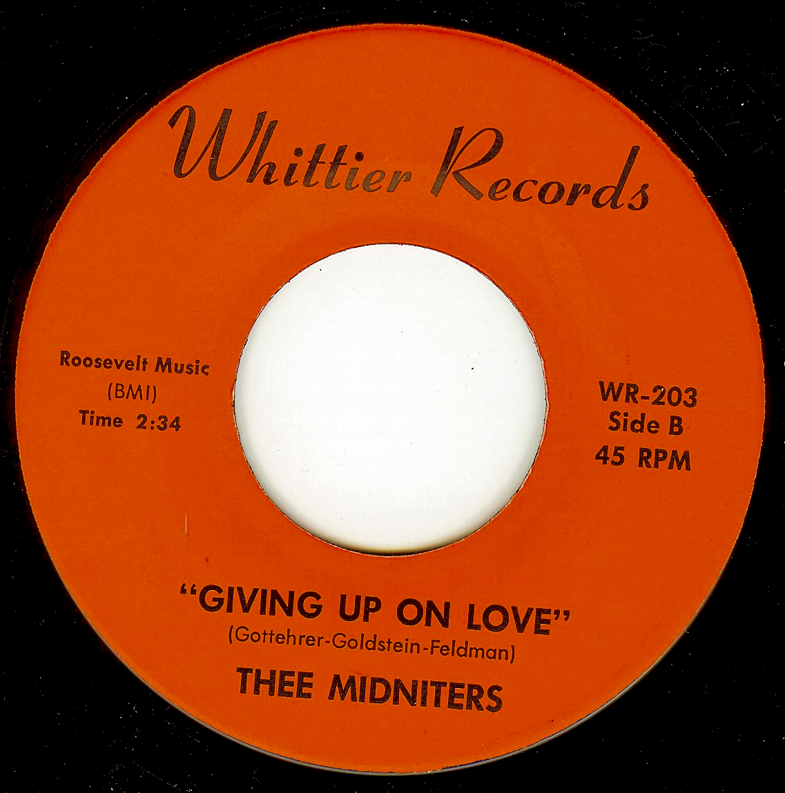 Thanks Derek for all the incredible music you give us be it soul, rock, beat as you call it - whatever genre - you have impeccable taste. By the way Thee Midniters Giving Up On Love is written and produced by the same writer producers who did The Strangeloves "I Want Candy": Robert Feldman, Richard Gotteher and Jerry Goldstein [excluding Bert Berns]. From Johnnie K in Auckland New Zealand